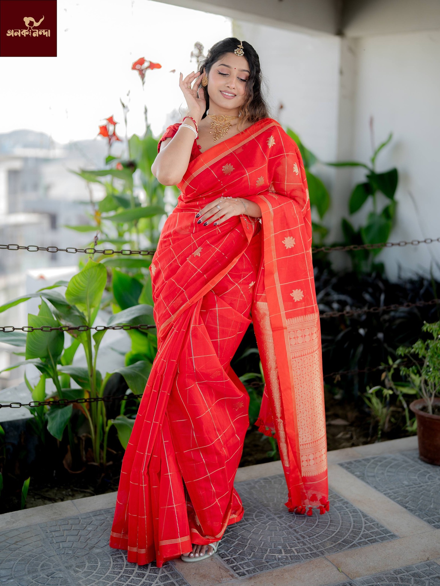 সিদুর লাল দোতারি সিল্ক শাড়ী